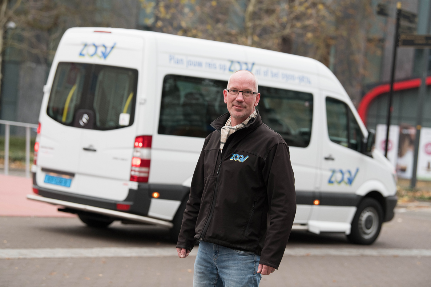 Jeroen Wilts is keurig op tijd. “Ik probeer altijd zo vroeg mogelijk bij mijn reizigers te zijn”, zegt hij terwijl hij de deur opent. Het is maandagmiddag. Pas om 12.30 uur staat de volgende rit gepland, dus even tijd om kennis te maken. “Ik had nooit gedacht dat ik het taxi-rijden zo leuk zou vinden, maar ik doe het nu al heel wat jaar. Eerst zeven jaar straattaxi, nu ZOOV.” Jeroen rijdt voor ZOOV Op Maat. “Leerlingenvervoer had ook gekund, maar geef mij maar de ritten van Op Maat. Veel meer afwisseling, dat bevalt mij goed.”